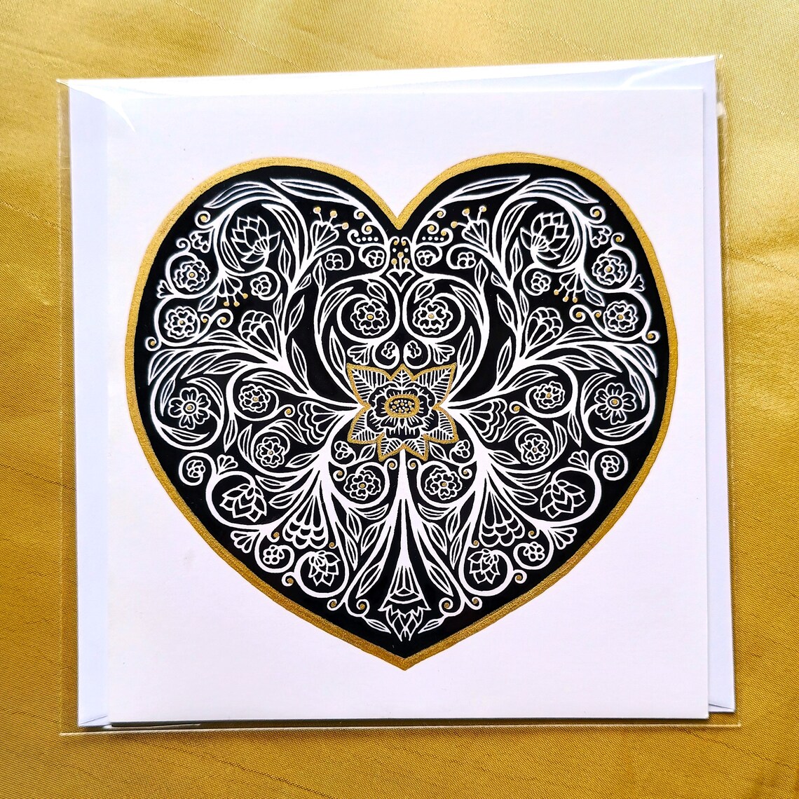 by hand with gold and silver highlights.